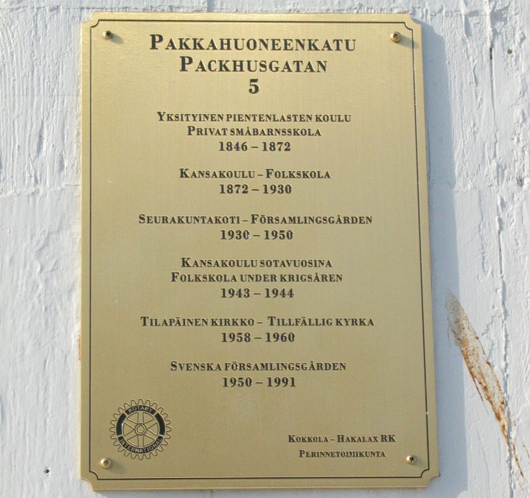 Lotta SvärdAn dieser Stelle wohnte in den Jahren 1827–1848 Brita Johanna Ahlbäck, die das Vorbild für die Figur der Lotta Svärd in „Die Erzählungen des Fähnrich Stål“ von Johan Ludvig Runeberg gewesen sein soll. Brita Ahlbäck folgte ihrem Mann, dem Fähnrich Ahlbäck, zur Front, wo sie für die Feldkantine zuständig war. Später, im Jahre 1921, wurde in Kokkola der erste Distrikt der Lotta-Svärd-Bewegung gegründet, einer freiwilligen weiblichen Hilfsorganisation für die Landesverteidigung.