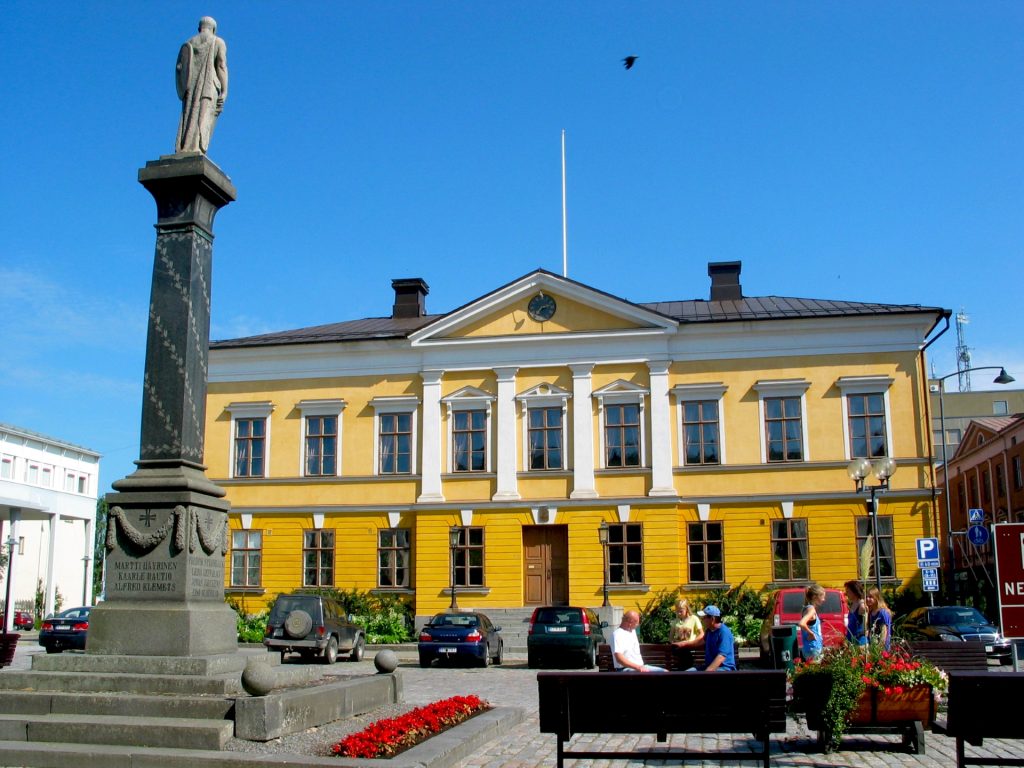 Mannerheiminaukio (“Mannerheim Square”) is the city’s old market square, where trading continued until 1936. The current name of Mannerheim Square was brought into use in 1942, named after respected field marshal Mannerheim. On the edge of the square there is the imperial-style old Town Hall (1842), which was designed by Carl Ludvig Engel and built by the ship-owner and commercial councillor Anders Donner. Over the years the Town Hall has acted as the city jail, customs house, magistrate’s court, and treasurer’s court. The city’s magistrates and council were convened there, as well as parties for the burghers. The building opposite the town hall was the second stone building to be erected in the city. Merchant and ship-owner Anders Roos constructed it in 1810 as a residence for his daughter´s family. The city’s first permanent hospital, the Libeck hospital, was opened on the upper floor of the building in 1853. In the middle of the square there is the “Statue of Freedom” (Vapaudenpatsas) sculpted by Johan Münsterhjelm in 1920.